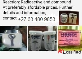 Hager Werken Embalming Compound Pink and whitePowder call+27 63 480 9853 inGeneral items from Germany Embalming compound in powder form both PINK andWHITE Radioactive and not (HOT and not HOT) its all available. We are lookingfor serious buyers. we are selling in kilograms starting from 1 kilogramupwards.call / whatsapp Mr Bako Solomon on +27 63 480 9853 or emailus on : sales.embalmingproducts@gmail.com
